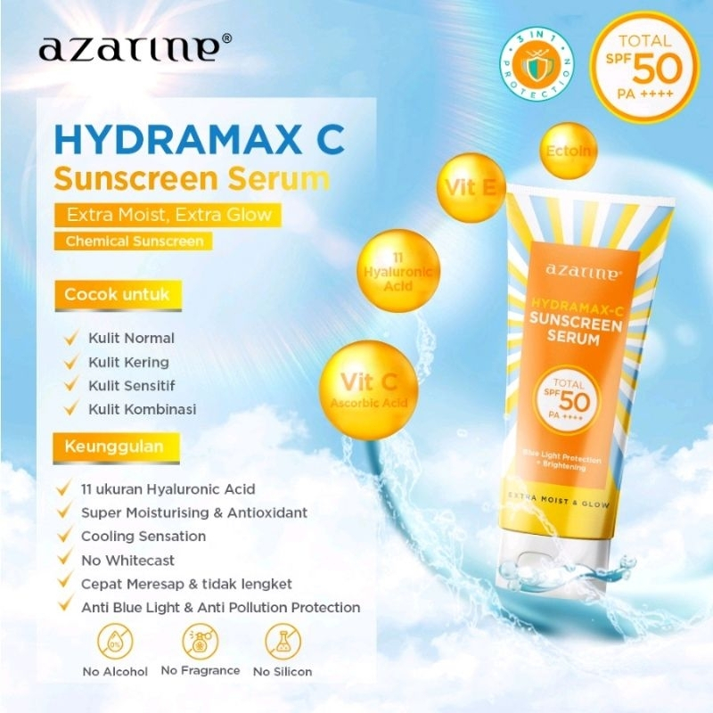 ]✨Azarin Hydramax-C Serum SPF50 PA+++ - Anti UV, Kulit Glowing Lembap, Tekstur Ringan ✅BPOM RI
