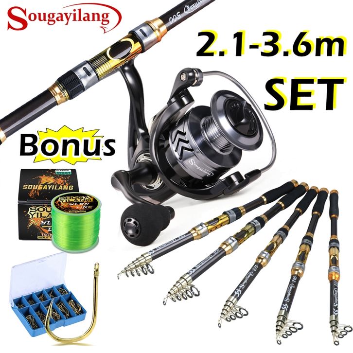 Joran Set Lengkap Sougayilang – Joran Carbon 2.1–3.6m + Reel 1000–6000 Max Drag 15kg – Joran & Reel Pancing 1 Set