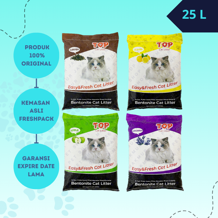 Pasir Kucing TOP Gumpal Wangi 25 Liter TOP Cat Litter | 25L 20kg ✔️