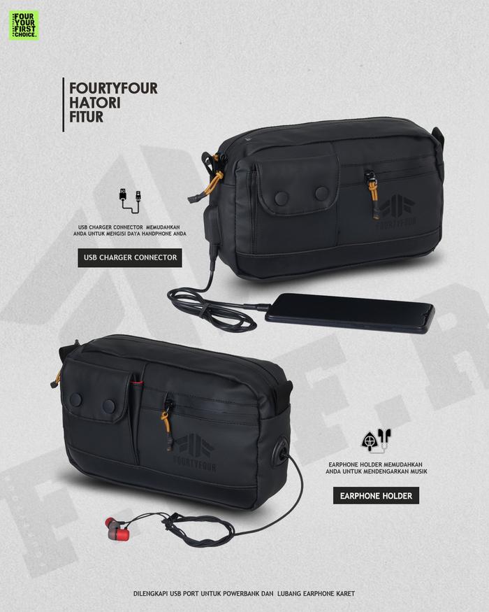 FOURTYFOUR HATORI - TAS SLING BAG WATERPROOF ANTI AIR - HAND BAG 2 IN 1 BISA SELEMPANG DAN HAND BAG SLINGBAG - BLACK