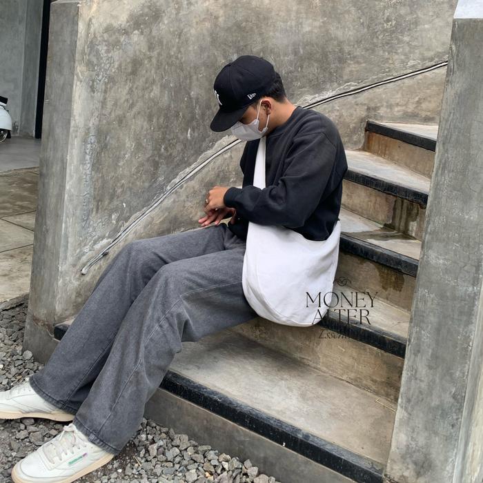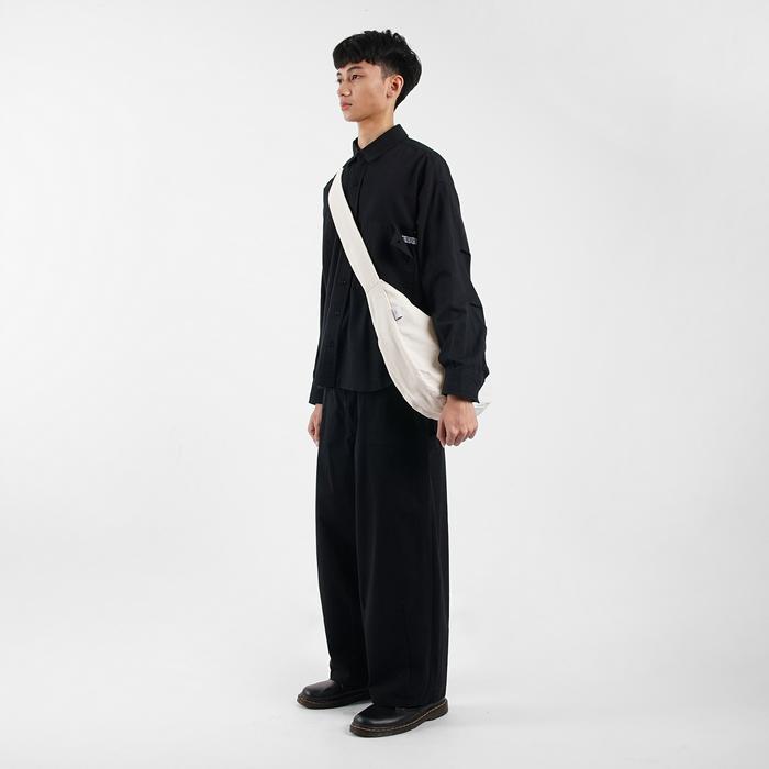 OVAL BAG BY MONEY ALTER / TAS SELEMPANG BAHAN KANVAS - BLACK