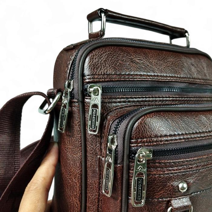 POLO AMSTAR TAS SELEMPANG SLINGBAG CROSSBAG PRIA KULIT OSCAR PREMIUM SUDAH ANTI AIR COWOK - HITAM