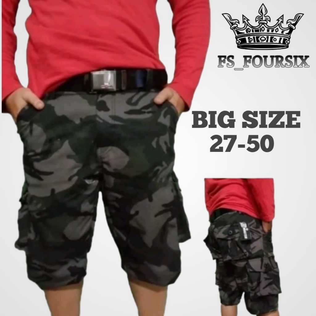 [Mall] BIG SIZE UKURAN JUMBO CELANA CARGO PENDEK LORENG PRIA BAHAN KATUN DRIL TEBAL
