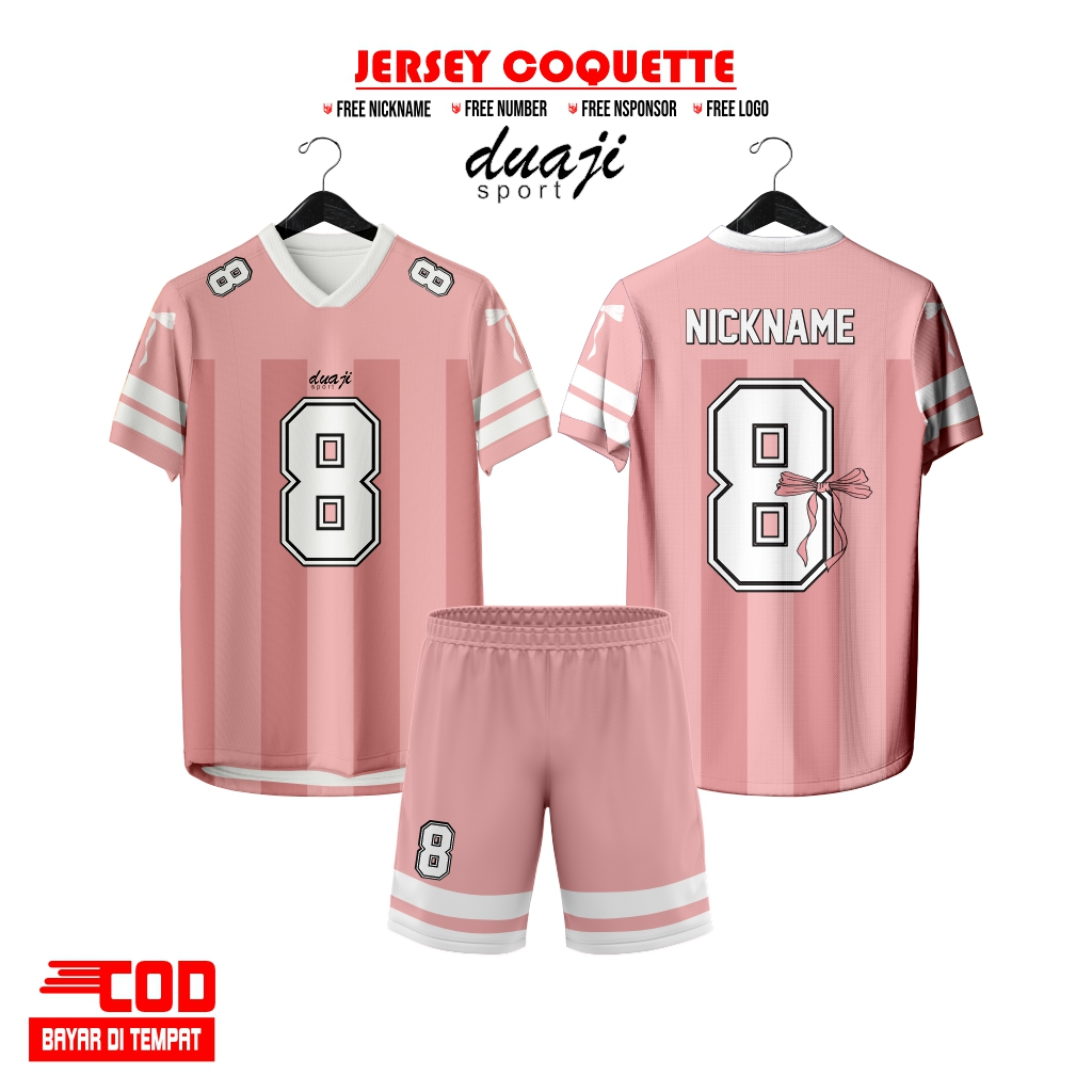 COQUETTE - RIBBON PINK JERSEY KOREA TERBARU / VOLY / FUTSAL / TENIS CUSTOM NAMA