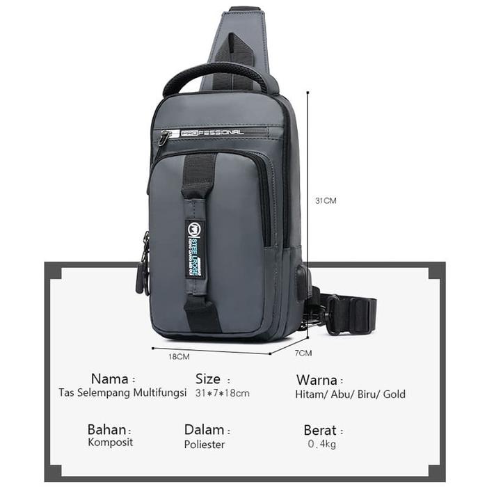 FREEKNIGHT TAS SELEMPANG PRIA CASUAL MULTIFUNGSI SLINGBAG ANTI AIR TS702 - HITAM