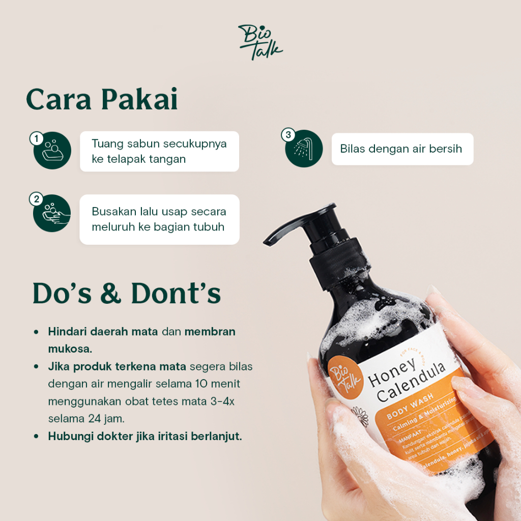 BIOTALK HONEY CALENDULA BODY WASH | 300 ML | NO SLS/SLES | SABUN MANDI CAIR NATURAL | MELEMBABKAN