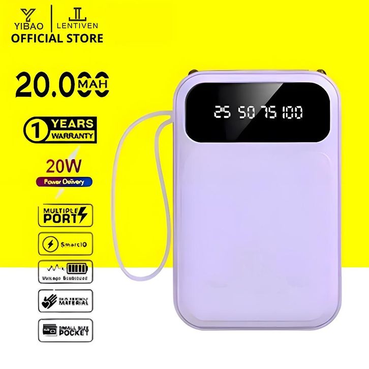 YIBAO LENTIVEN Powerbank 20000 mAh Mini Size Fast Charging with Kabel Data Type C Micro USB B7