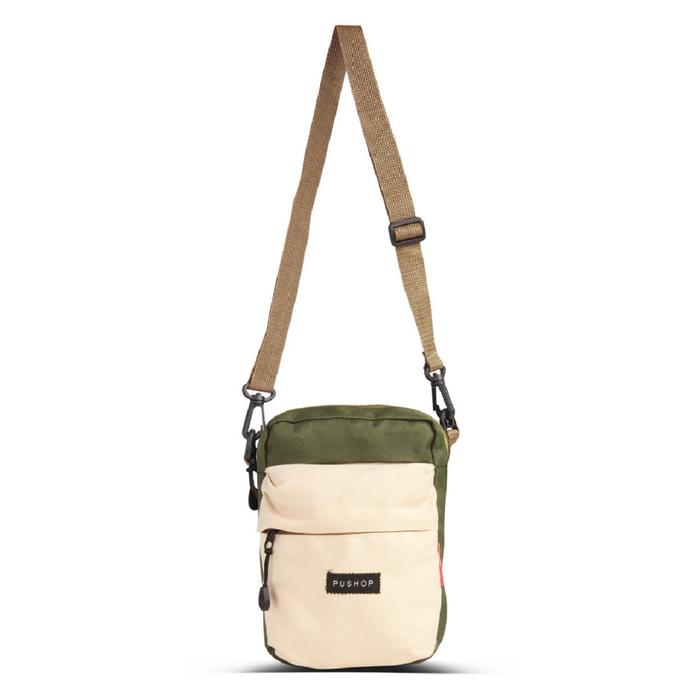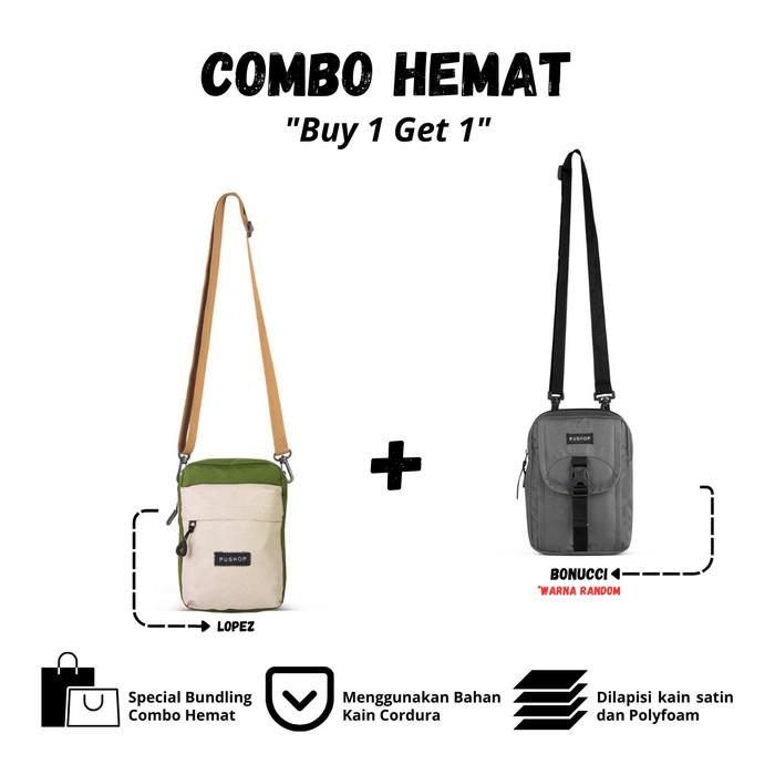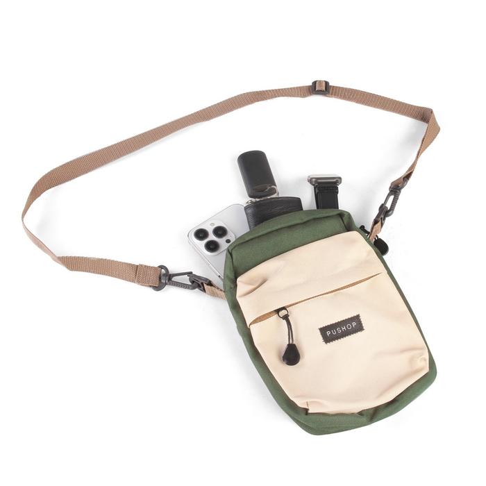 PUSHOP PAKET KOMBO HEMAT TAS SELEMPANG PRIA WANITA - BELI 1 DAPAT 2 TAS SELEMPANG PRIA MINI SLINGBAG LOPEZ GET TAS MINI SLING BAG BONUCCI CASUAL POLOS - HIJAU - CREAM