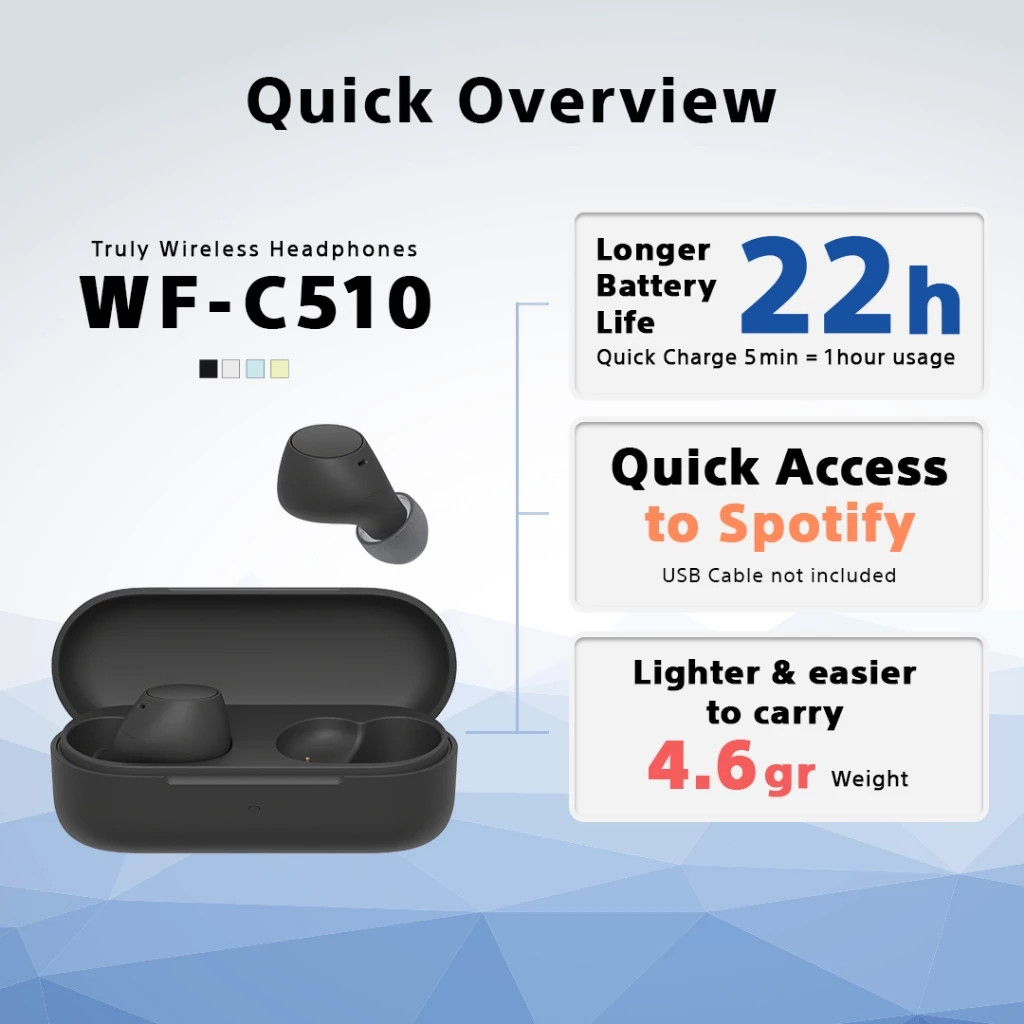 SONY WF-C510 TWS MULTIPLE CONNECTION, AMBIENT SOUND, BATTERY 11H, FASTER QUICK CHARGING, BLUETOOTH 5.0, IPX4 - WONDERLAND STORE