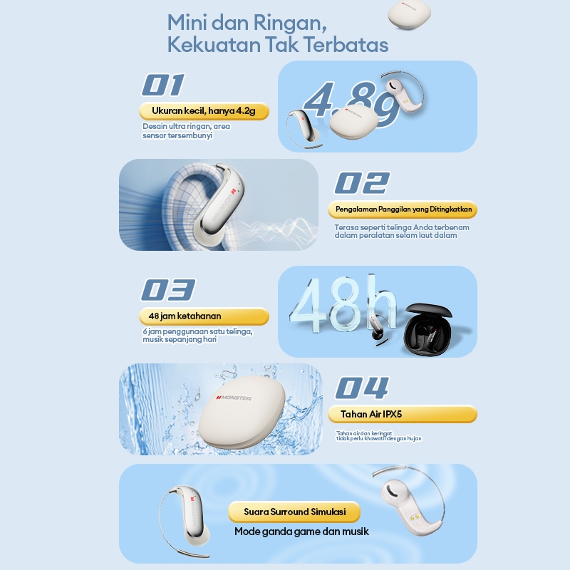 MONSTER C01 OWS OPEN EAR WIRELESS UPGRADE BLUETOOTH 6.0 EARPHONES DIRECTIONAL SOUND TRANSMISSION TECHNOLOGY IPX5 WATERPROOF HEADSETS
