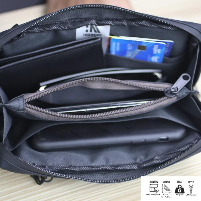 TAS HIGHMORE STRUICK - TAS SELEMPANG BIMO WATERPROOF HITAM PRIA ELEGAN SLINGBAG, HANDBAG & CLUTCH