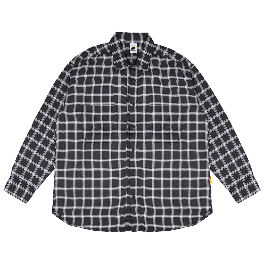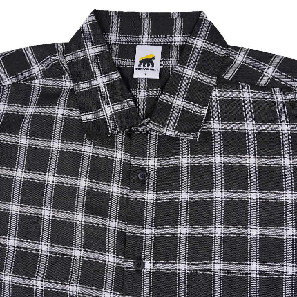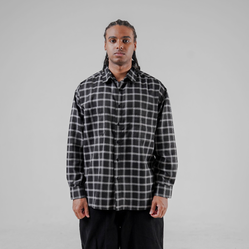 House of Smith Kemeja Flanel Oversize Pria - Double Pocket Oversized Flannel Black White - Flannel Long Shirt