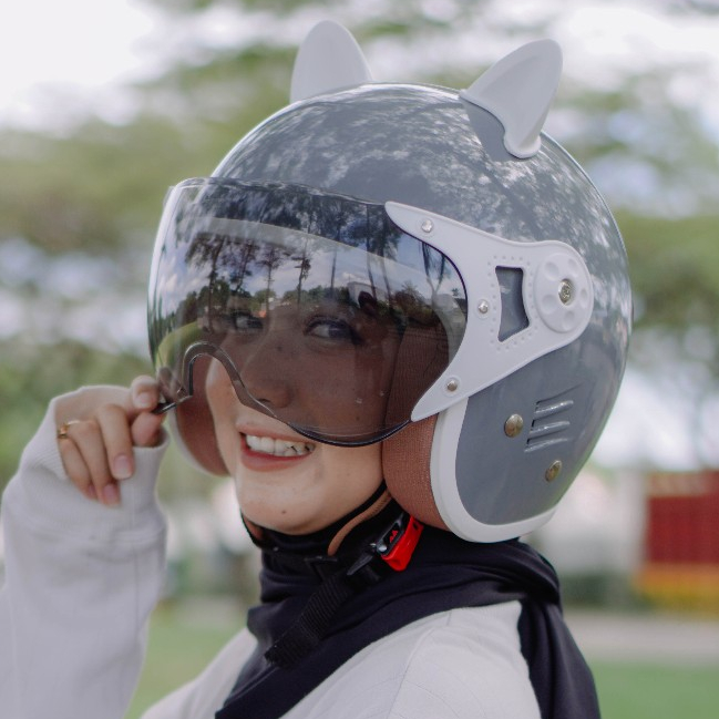 Helm Retro Pilot Hijab Friendly Half Fe Bipplast Fantasy Helem Wanita Cepol SNI