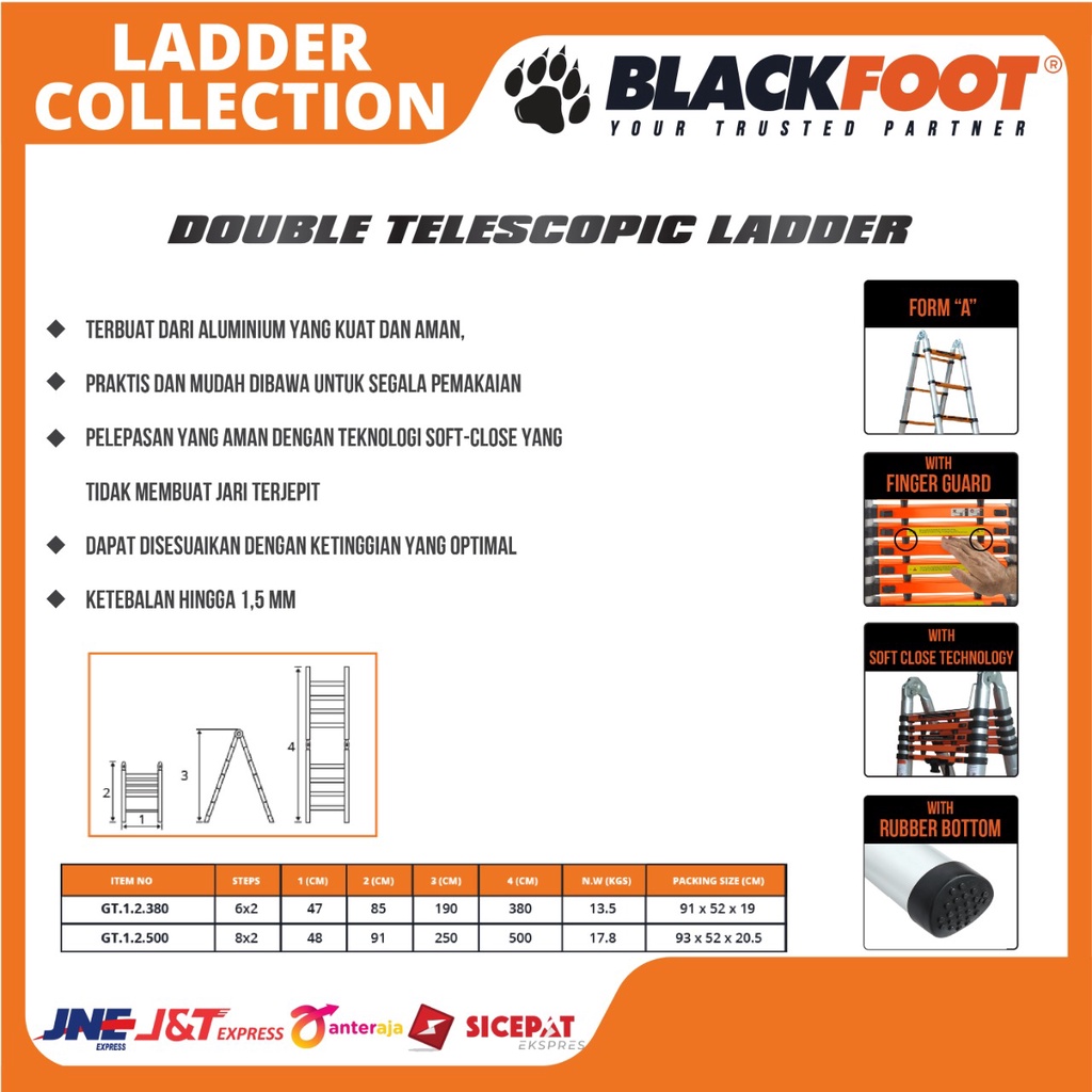 BLACKFOOT - Tangga Double Telescopic Lipat (Double Telescopic Ladder) Di lengkapi Finger Guard