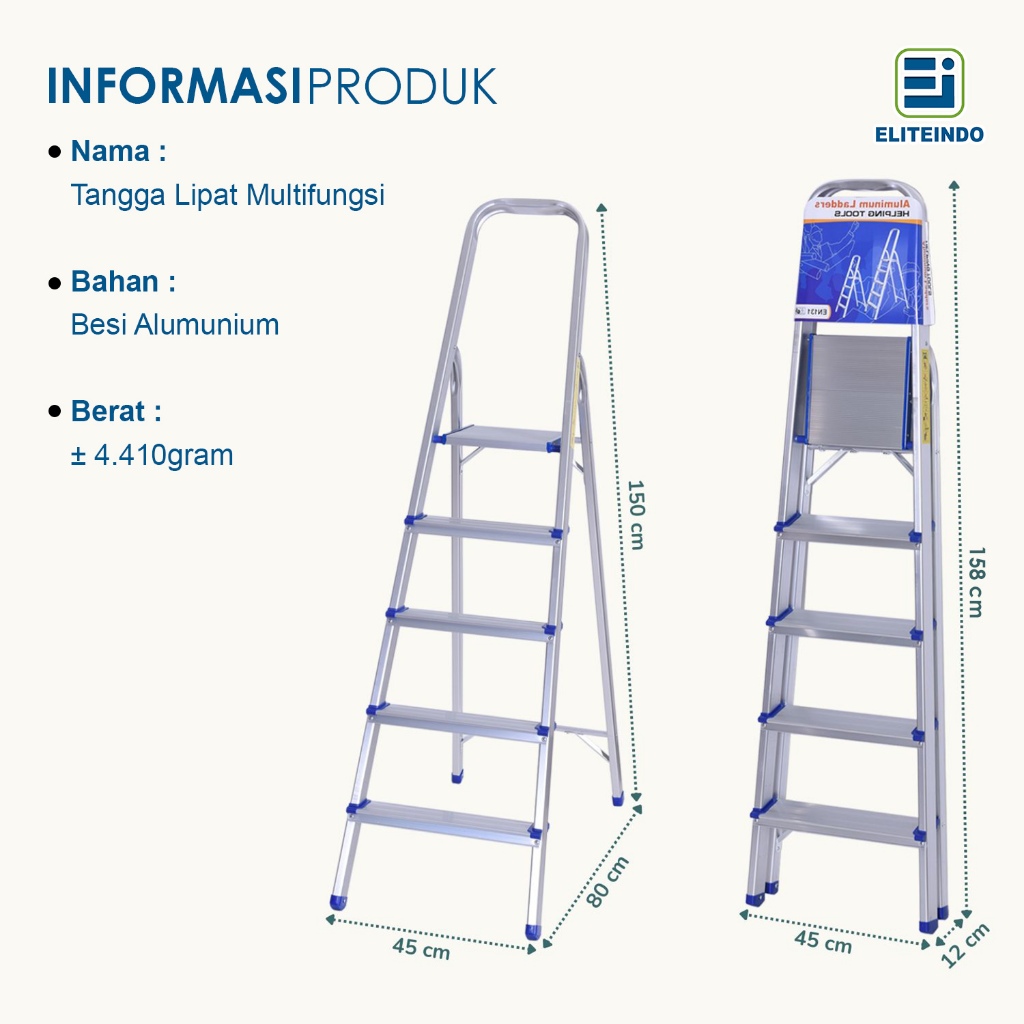 ELITEINDO-Tangga 1.1M/1.3M/1.5M/1.7M Lipat Aluminium Multifungsi Kuat & Kokoh Ladder Rumah Anti Slip