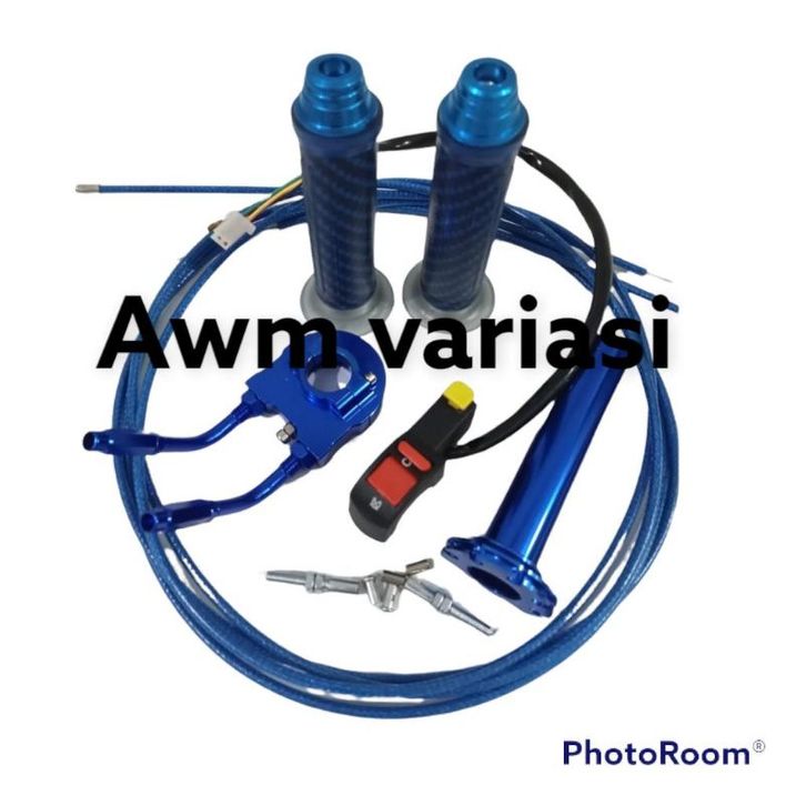 PAKET GAS SPONTAN 1 SET SLONGSONG GAS CNC+2 KABEL KARBON+STELAN L GAS +GRIP BAD KARBON+SAKLAR ON/OFF+JALU STANG.UNIVERS