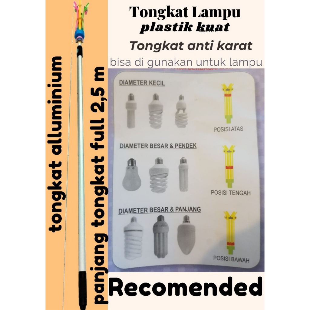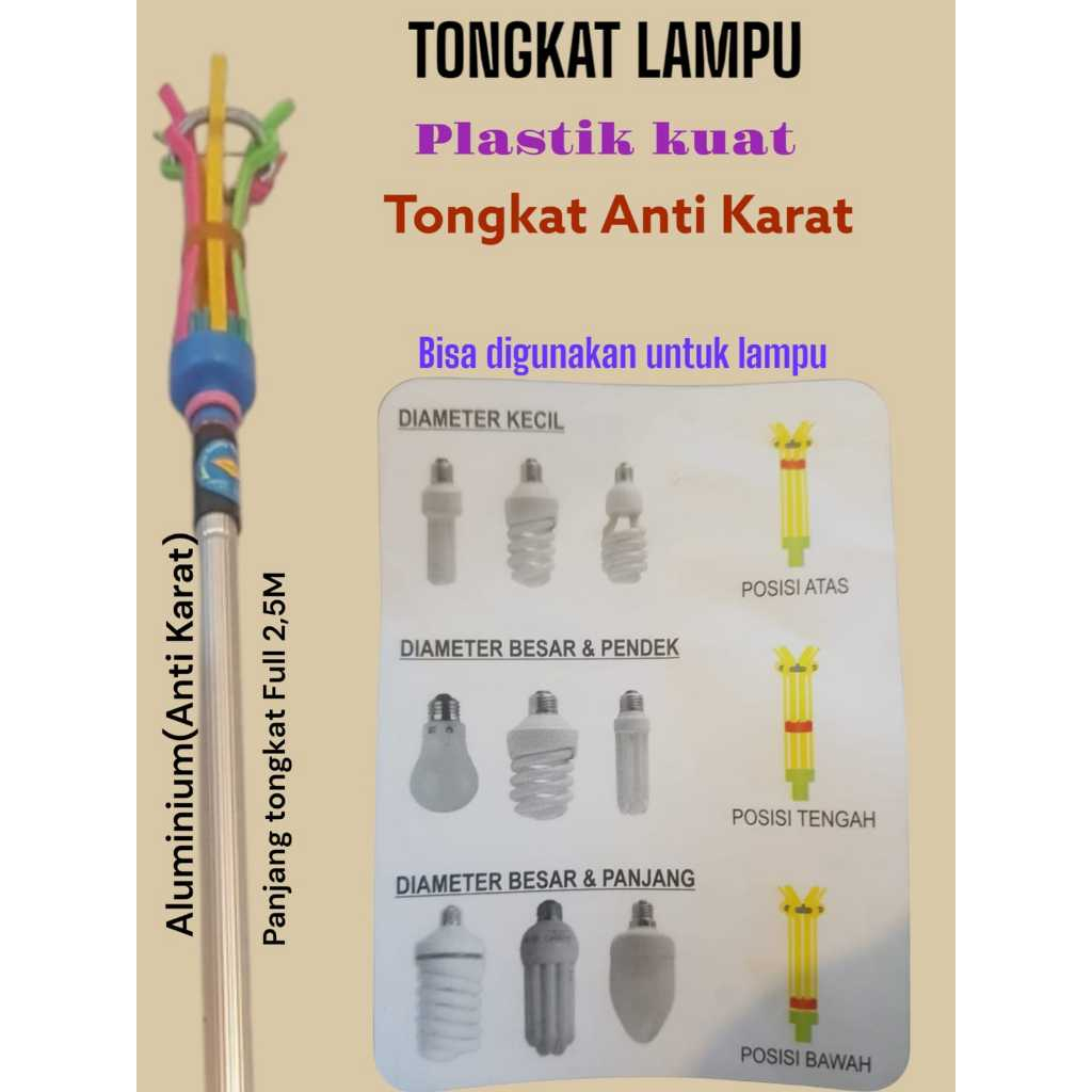 TONGKAT STIK PEMASANG LAMPU ALUMINIUM ANTI KARAT PANJANG 250CM /TONGKAT PENGGANTI LAMPU PLC SPIRAL DAN LED Tongkat lamp