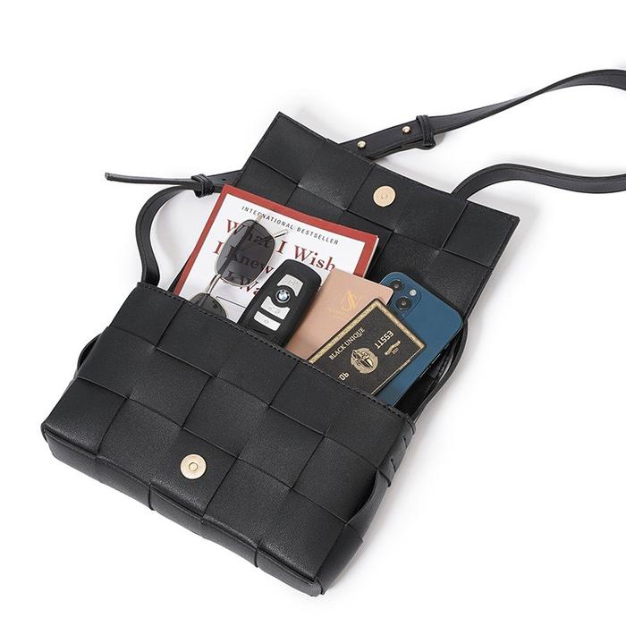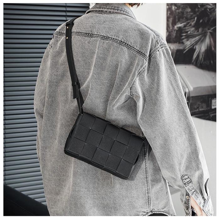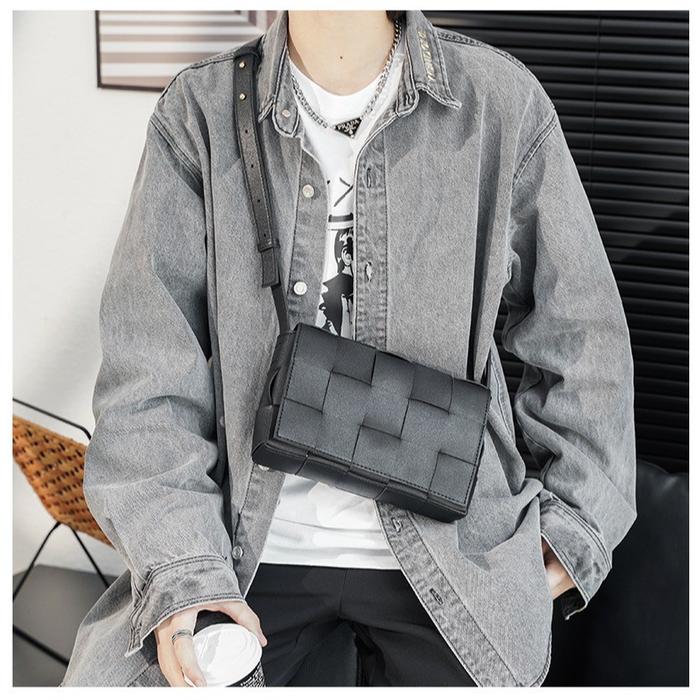 LEATHER CONCEPT METRO TAS SELEMPANG PRIA KULIT TAS PRIA KECIL TAS JALAN PRIA ANYAMAN HITAM COWOK - BLACK