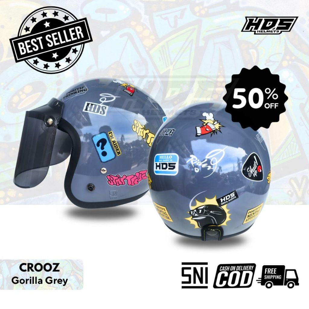 Helm Bogo Dewasa Classic Murah Crooz Half Fe HDS Helmet Motorcycle SNI Pria Wanita Cepol Hijab