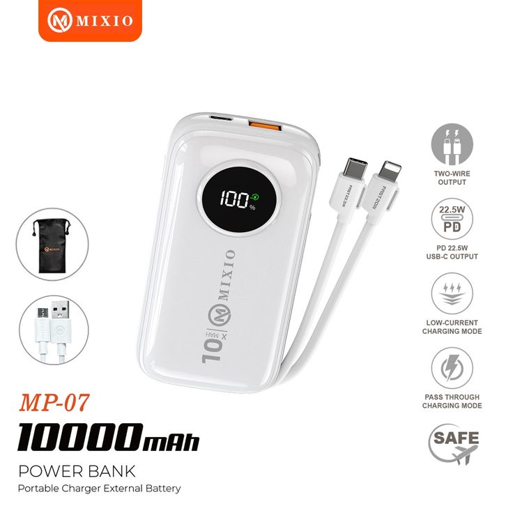 POWERBANK MIXIO MP-07 10000MAH POWERBANK MINI 22.5W WITH KABEL FAST CHARGING LIGHTNING IOS & TYPE C