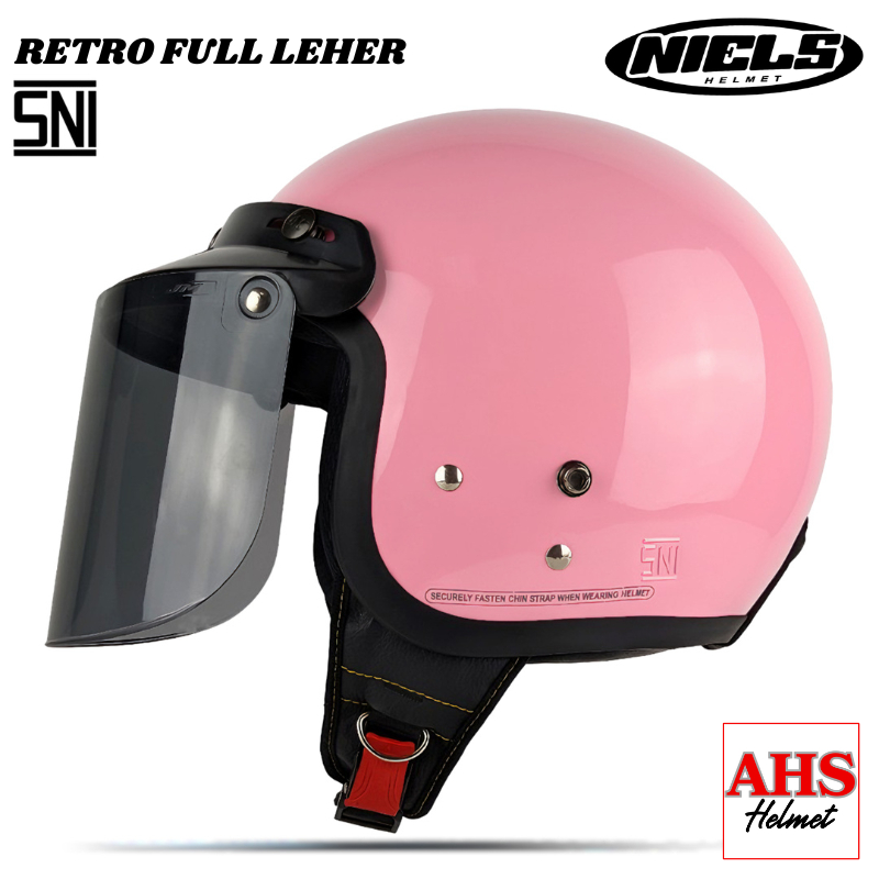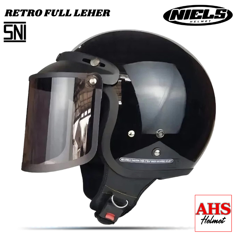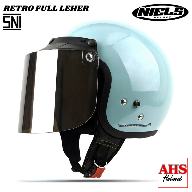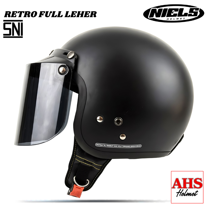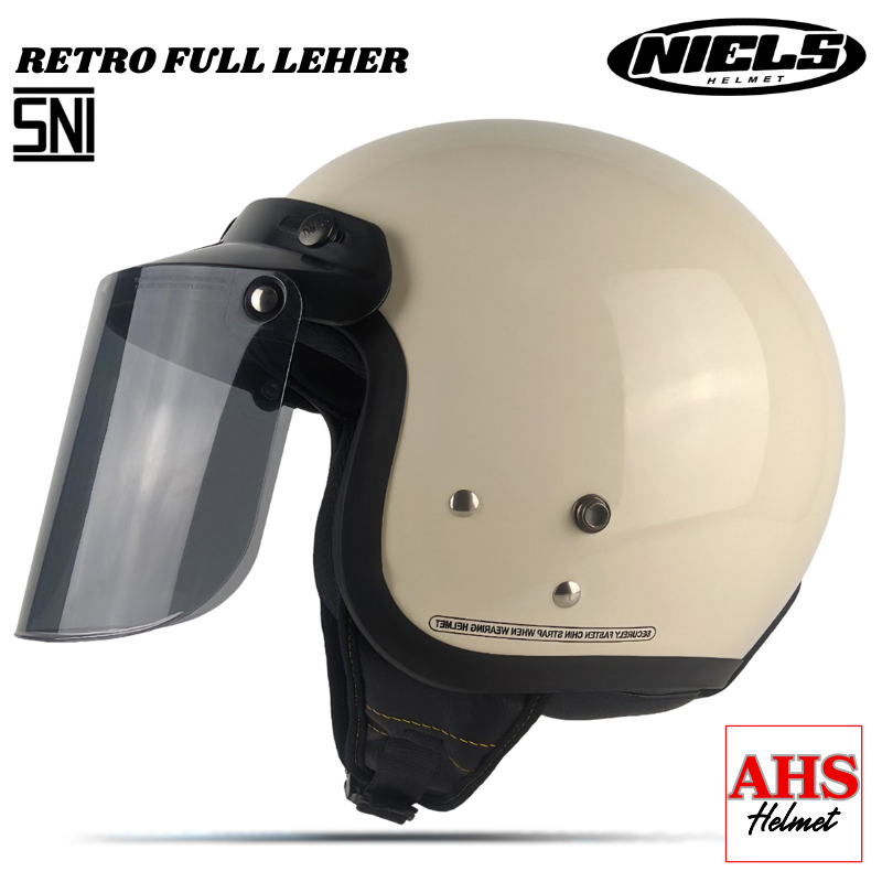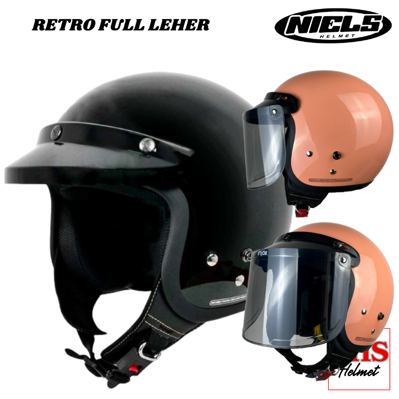 NIELS HELM RETRO CFM FULL LEHER KA DATAR CEMBUNG DAN PET BAHAN ABS STANDART SNI MOTORCYCLE