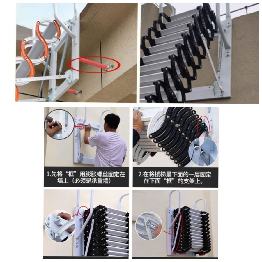 Tangga loteng - Tangga dinding - Tangga lipat teleskopik - wall mounted telescopic stairs