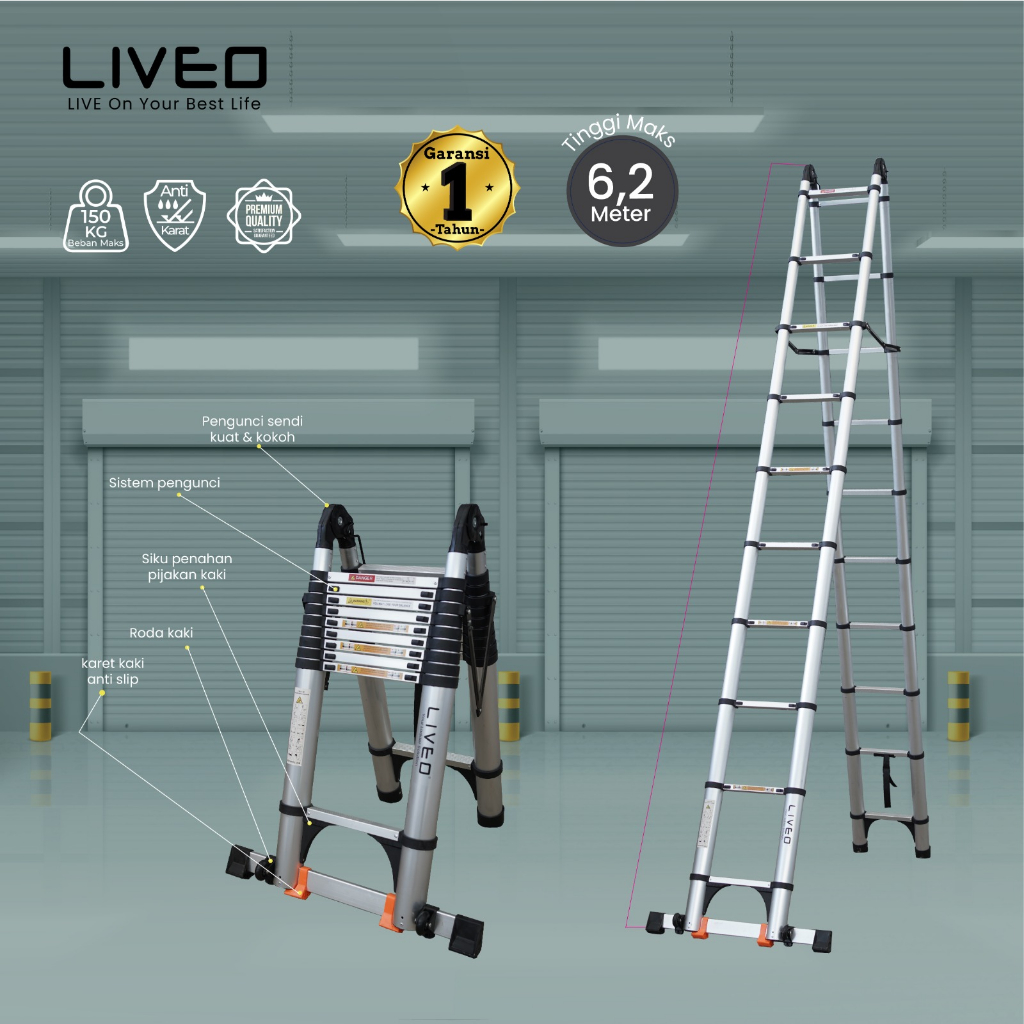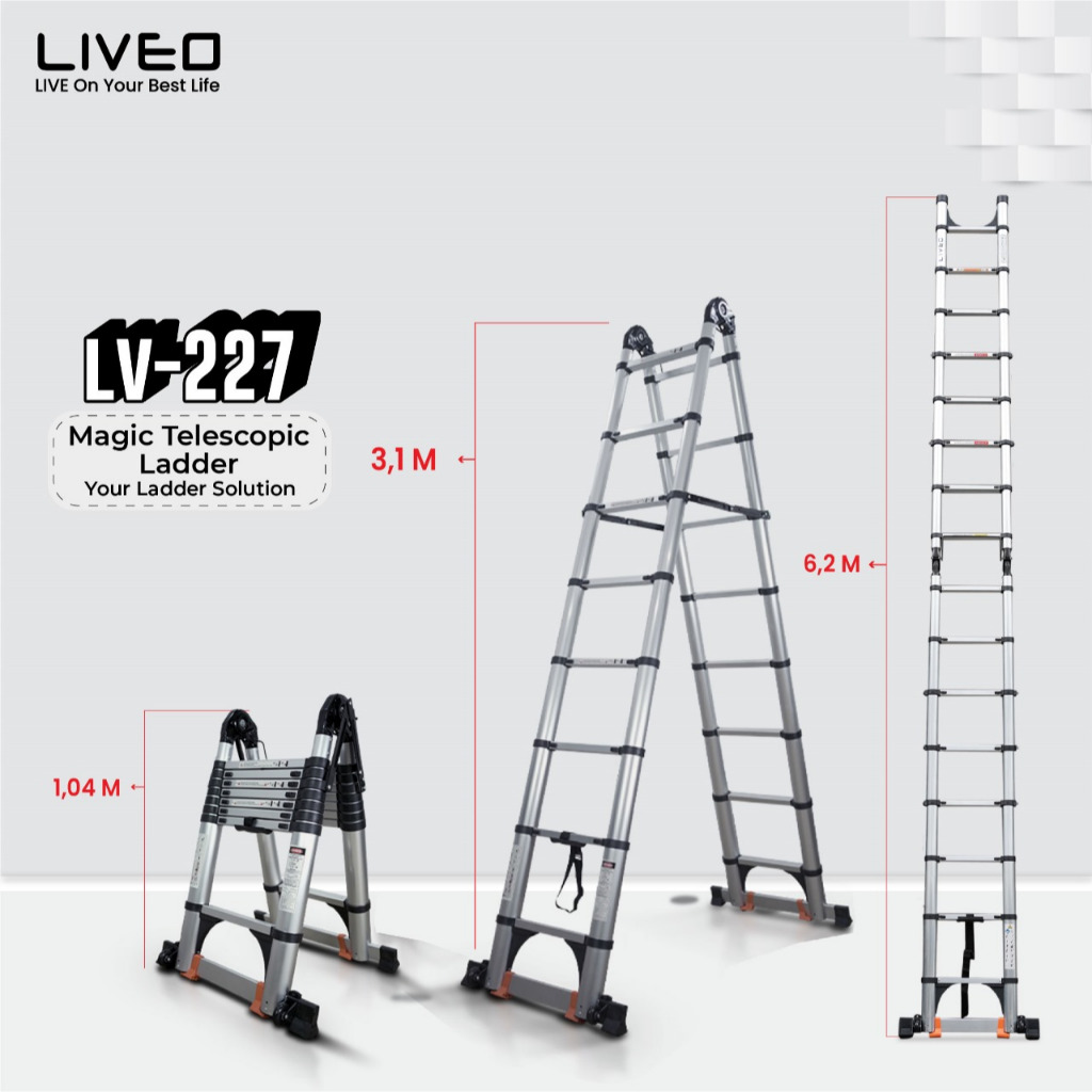 LIVEO Tangga Double Magic Telescopic Liveo LV-227 / Tangga Lipat Alumunium Teleskopik Ganda