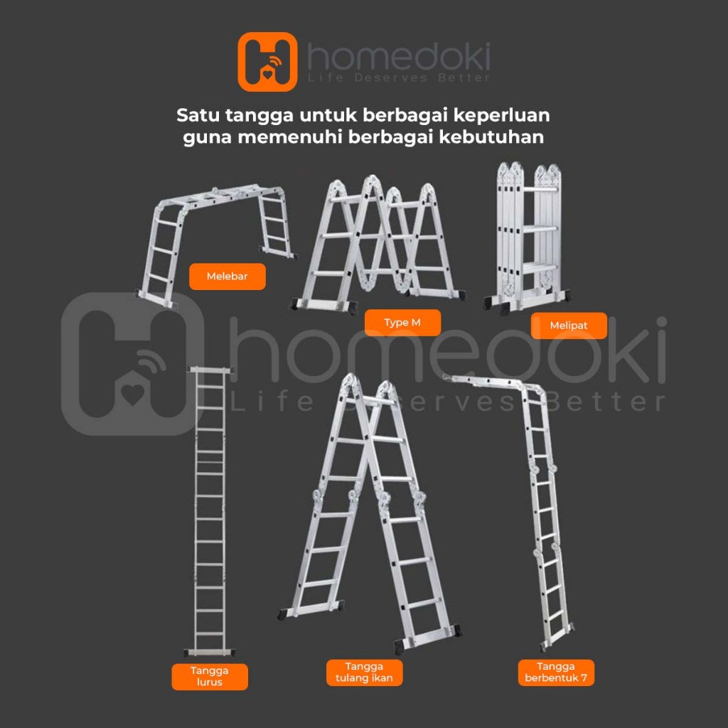 Homedoki Tangga Lipat Aluminium/Tangga Besi/Tangga Lipat/Tangga 9/10/11/12 Steps