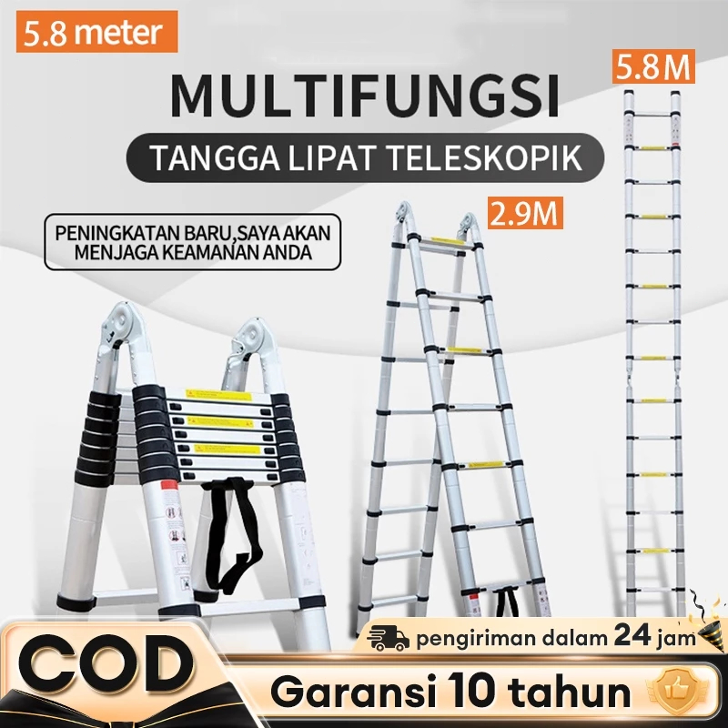 Tangga Telescopic Aluminium 3.4M-5.8M - Multifungsi (Lipat & Lurus), Ringan & Kuat, untuk Rumah & Proyek