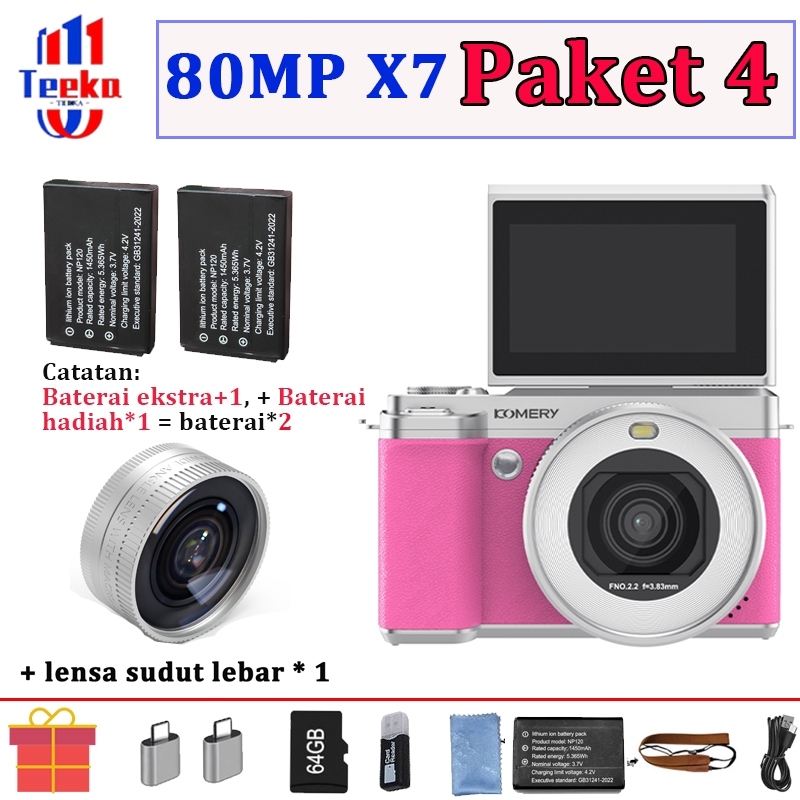 TEEKA 64GB 18X 80MP Kamera Digital 5K Vlogging Dengan Dukungan Selfie Koneksi WIFI untuk Hadiah Pemula