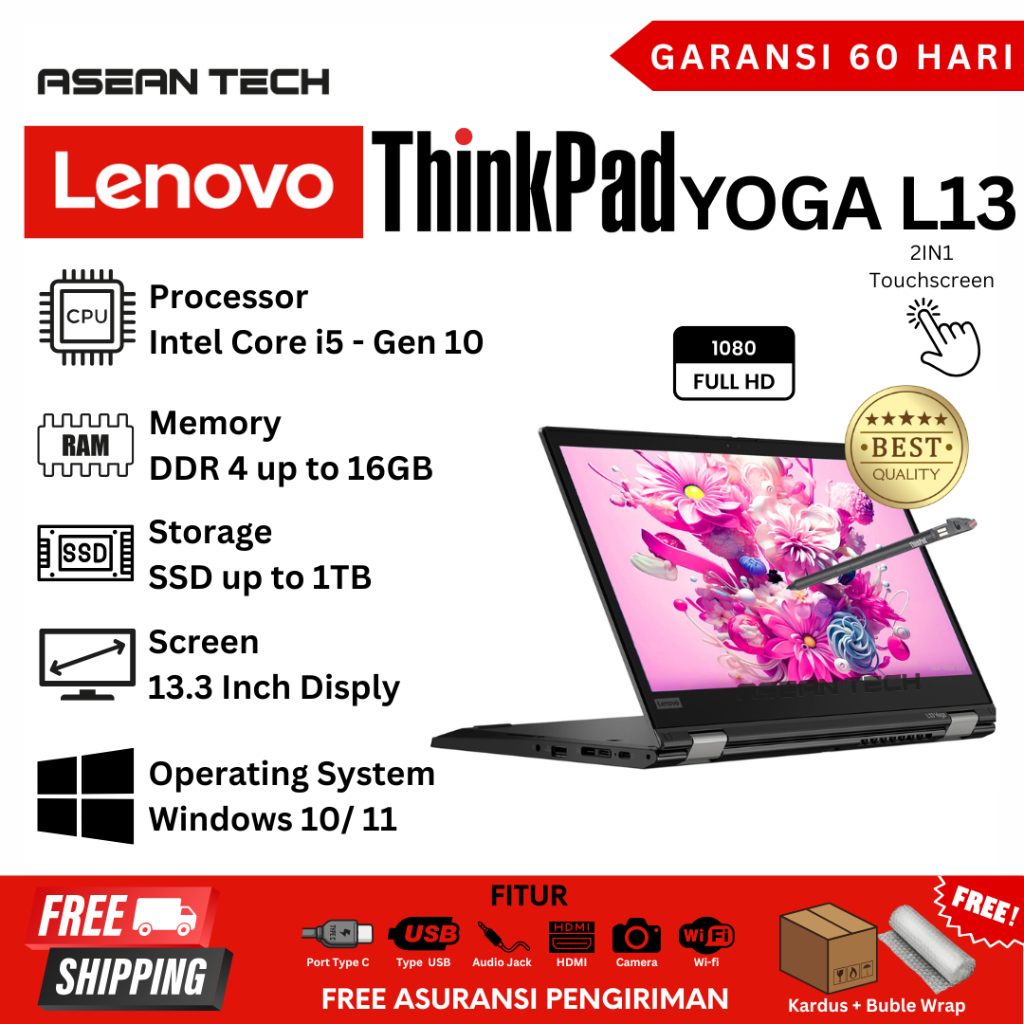 LAPTOP 2IN1 LENOVO THINKPAD YOGA L13 G3 CORE I5 - GEN 12 RAM 16GB SSD 1TB - SECOND GARANSI | FLIP