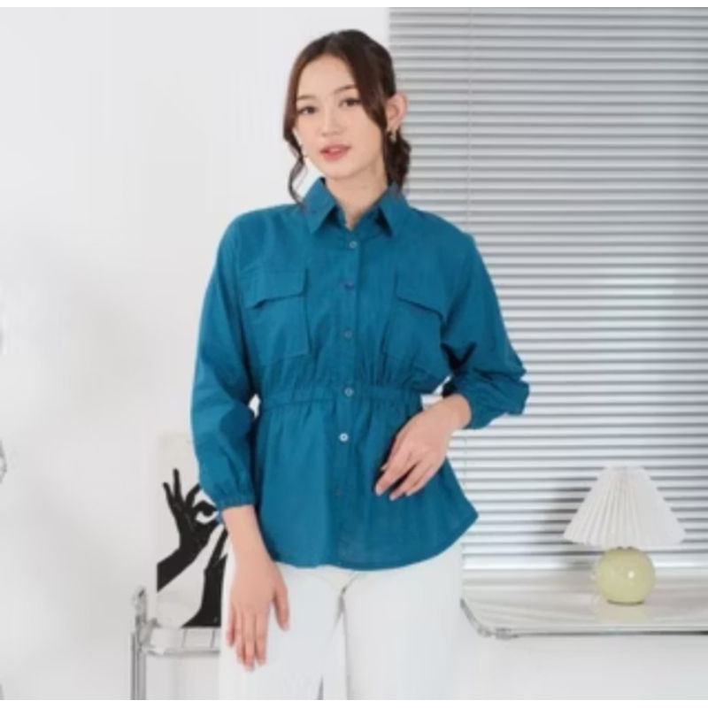 atasan wanita kekinia terlaris bena shirt bahan katun linen premium el elegan karet pinggang perut