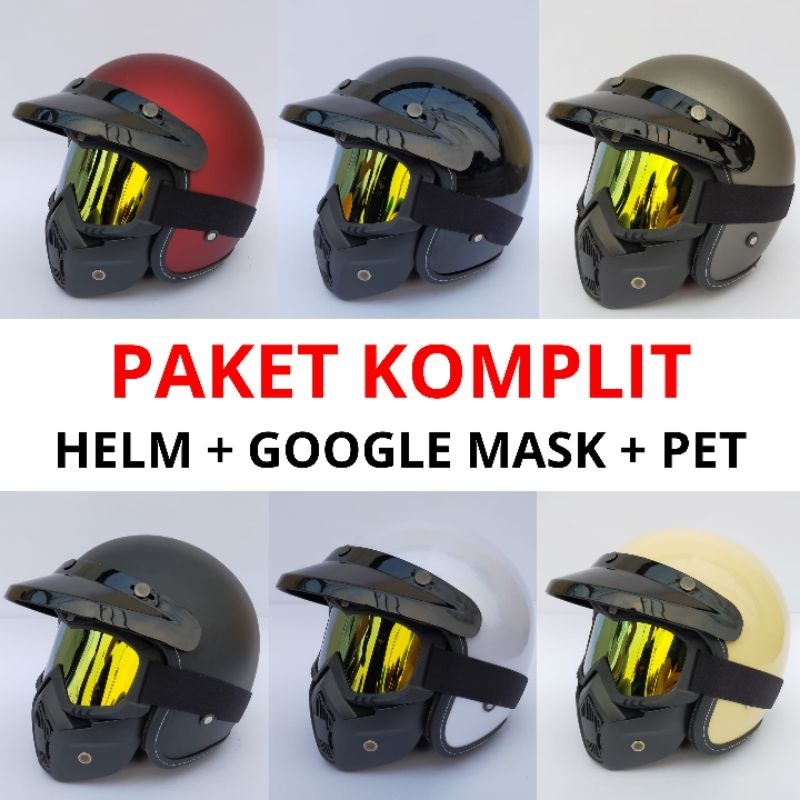 Helm bogo helm retro dewasa SNI google mask topeng paket touringtis