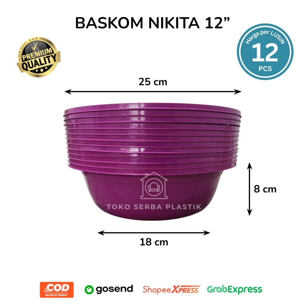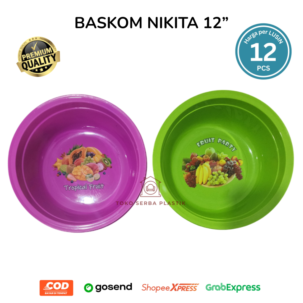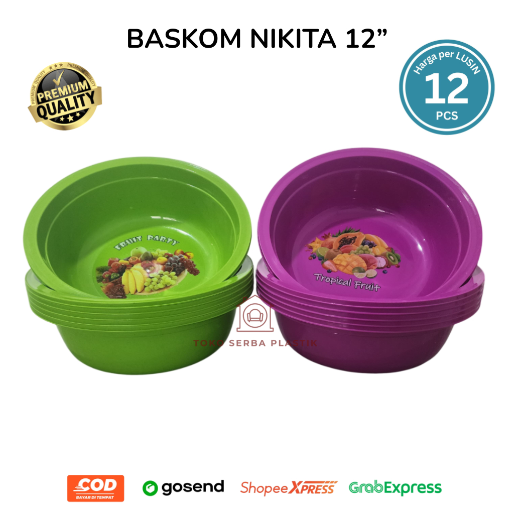 BASKOM NIKITA 12" INCH (12 PCS) WASKOM HAJATAN BERKATAN SERBAGUNA BESEK PLASTIK / BASIN NIKITA 12