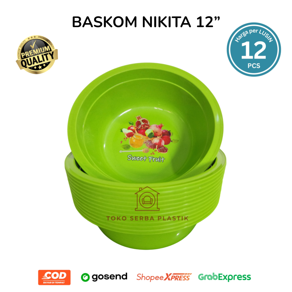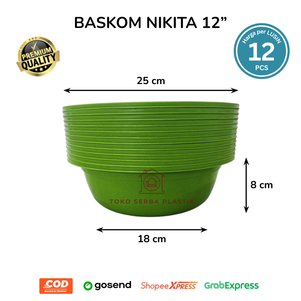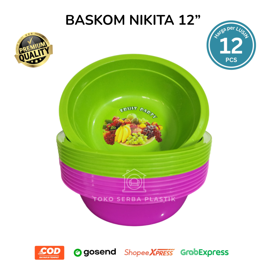 BASKOM NIKITA 12" INCH (12 PCS) WASKOM HAJATAN BERKATAN SERBAGUNA BESEK PLASTIK / BASIN NIKITA 12