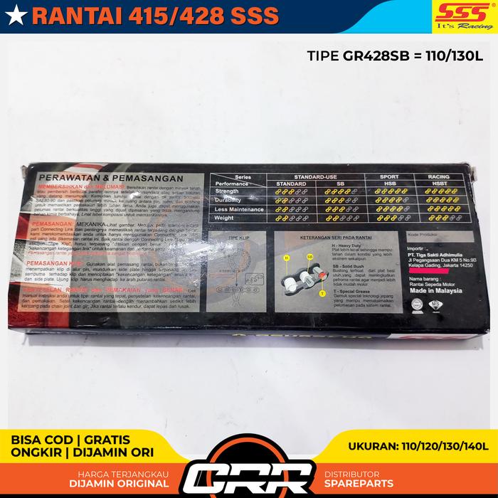 rantai sss 415 / 428 Gold Tipe GS415HSB / GS415HSB-T / GR428HSB / GR428HSB-T Ukuran 110 / 130L Warna