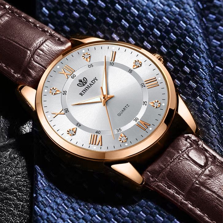 PROMO RINNADY Jam Tangan Pria IJ015 Kalender Kuarsa Santai Bisnis Tali Kulit Jam Tangan Cowok asamnb