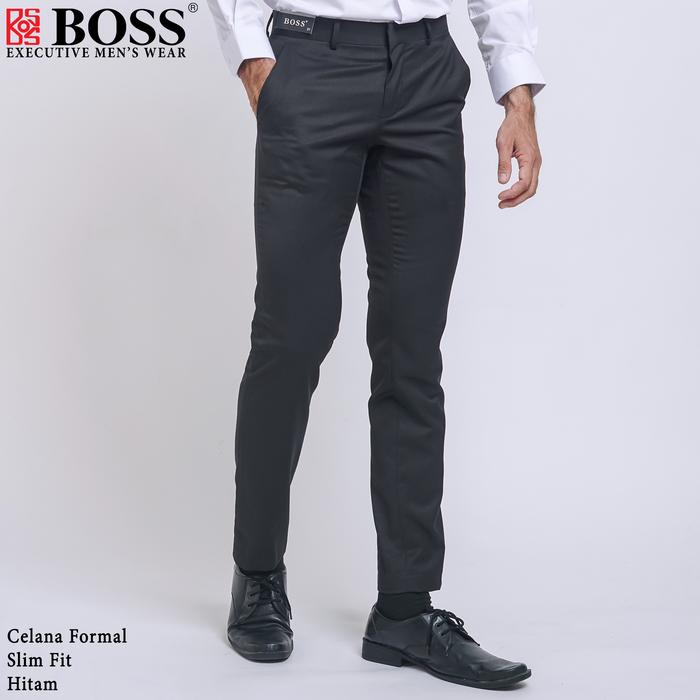 BOSS Celana Panjang Pria Formal Slim Fit Regular Fit Optima Stretch Hitam