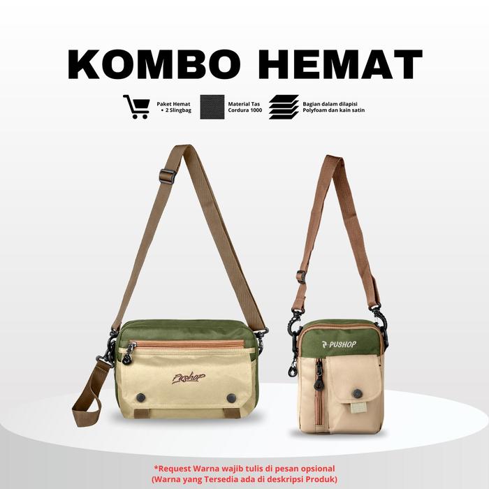 PUSHOP AUTHENTIC - COMBO HEMAT - BUY MORE SAVE MORE BELI 1 DAPAT 2 TAS SELEMPANG PRIA SLINGBAG RAZO GET TAS MINI SLING BAG MOTTA CANVAS - FULL HIJAU, FULL HIJAU