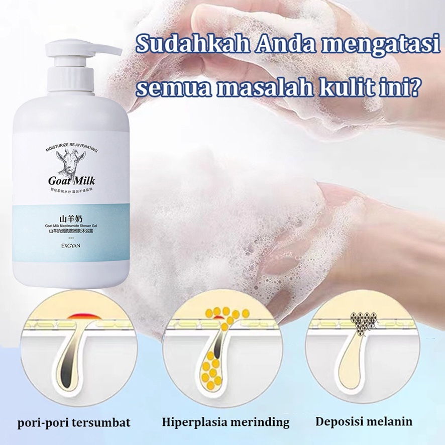 SABUN MANDI MEMUTIHKAN WHITENING SHOWER GEL GOAT MILK BODY WASH 800ML SUSU KAMBING NICOTINAMIDE PEREMAJAAN KULIT DEEP CLEANING MILK SHOWER GEL PEMUTIH BADAN SABUN
