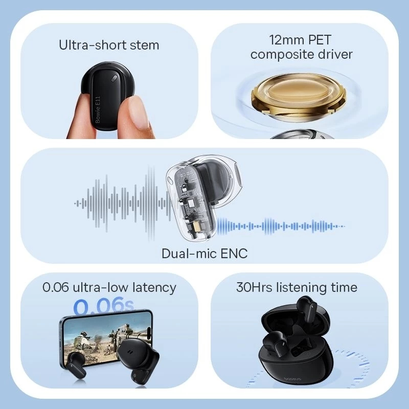 BASEUS TWS BOWIE E11 TRUE WIRELESS EARPHONE BLUETOOTH EARBUDS 30 HOURS BATTERY LIFE ENC - GARANSI 2 TAHUN