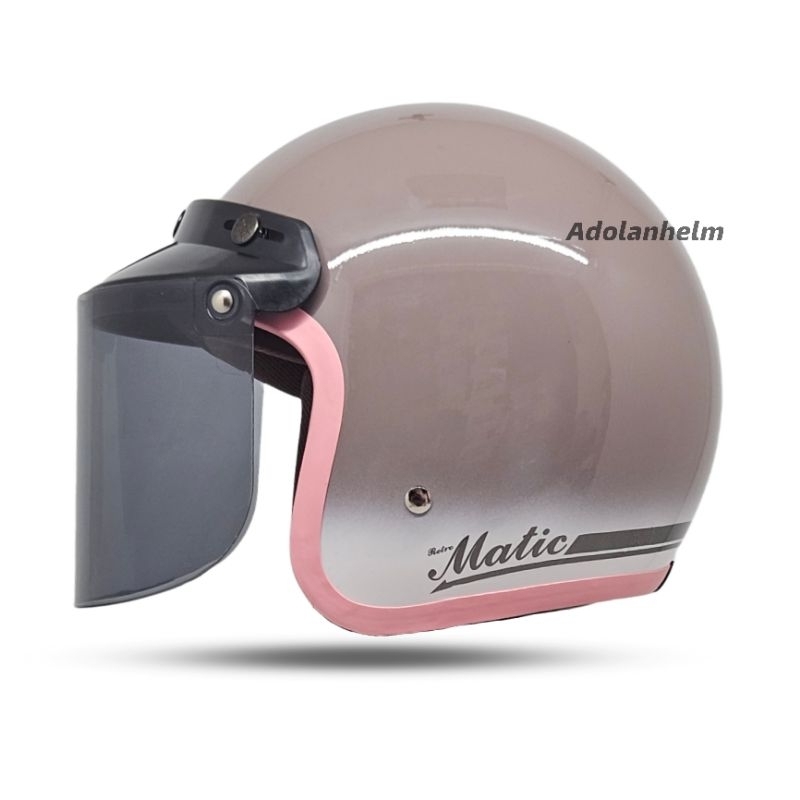 Helm Bogo Classic Gradasi List Pink Busa Coklat SNI
