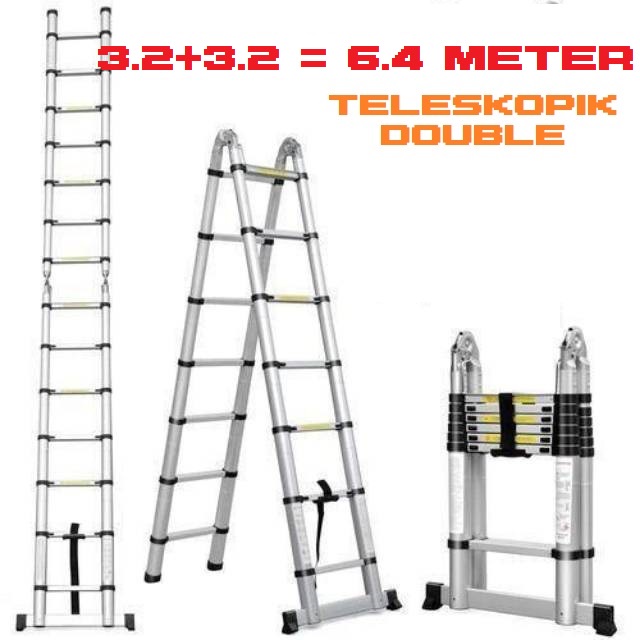 Tangga Teleskopik Double 6M / 6.4 Meter Type A Tangga Lipat Aluminium