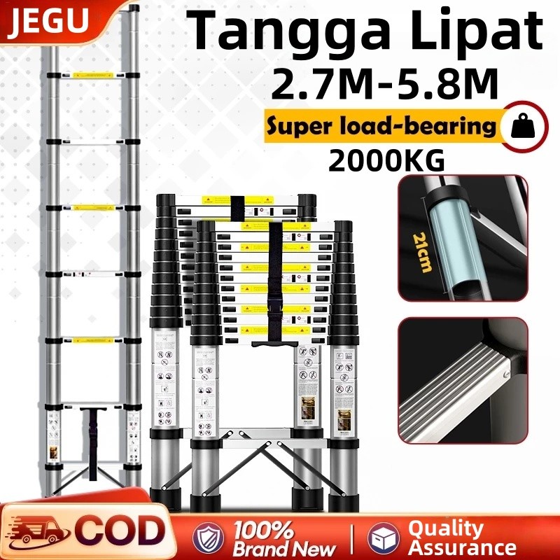 【Garansi 3 Tahun】JEGU Tangga Teleskopik Aluminium Portabel Tangga Lipat 2.7-5.1 Meter Multifungsi Telescopic Ladder Tang