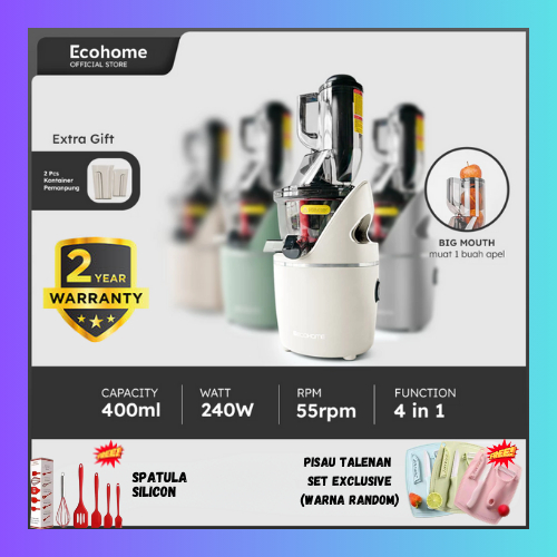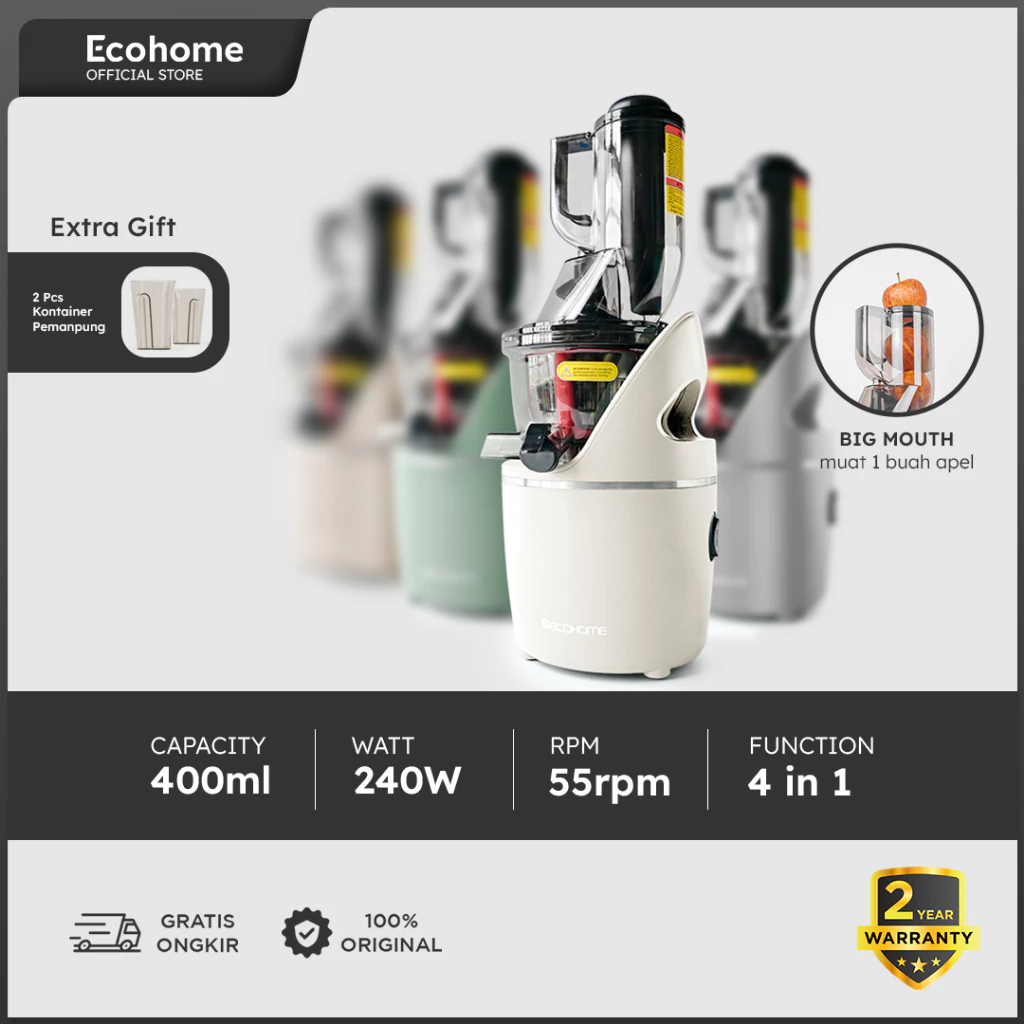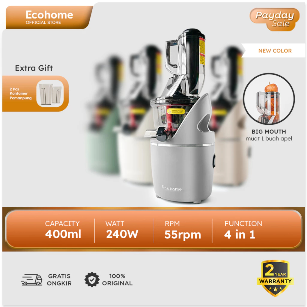 ECOHOME Slow Juicer Big Mouth ESJ999BM 55 RPM Pengekstrak Buah Low Watt Easy Clean Multi fungsi