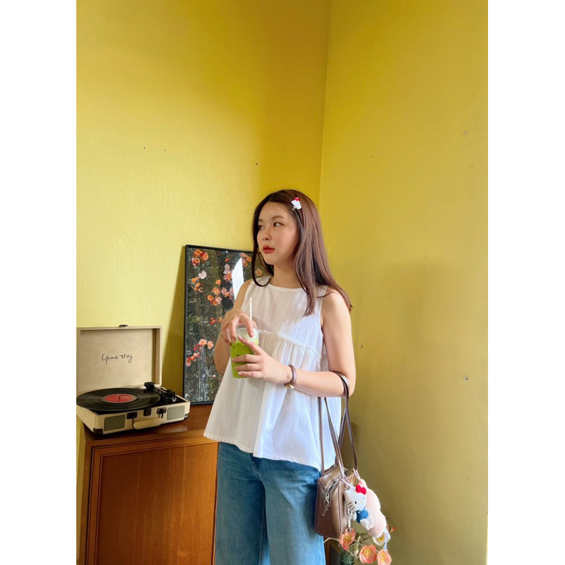 GAURY LINEN TOP TANK TOP BLOUSE ATASAN WANITA KOREA STYLE
