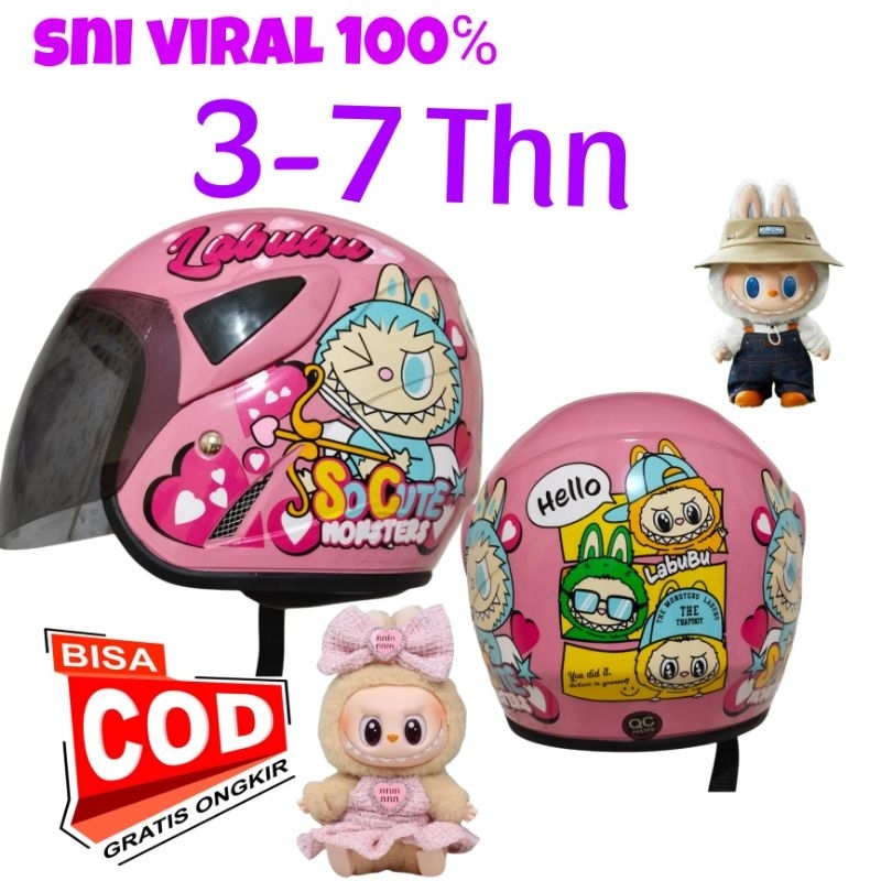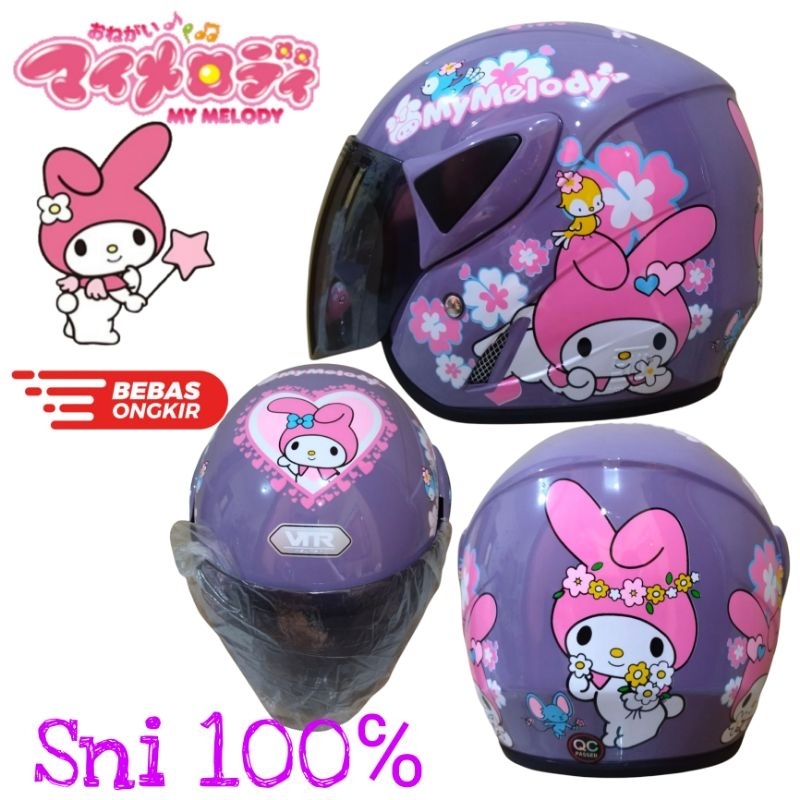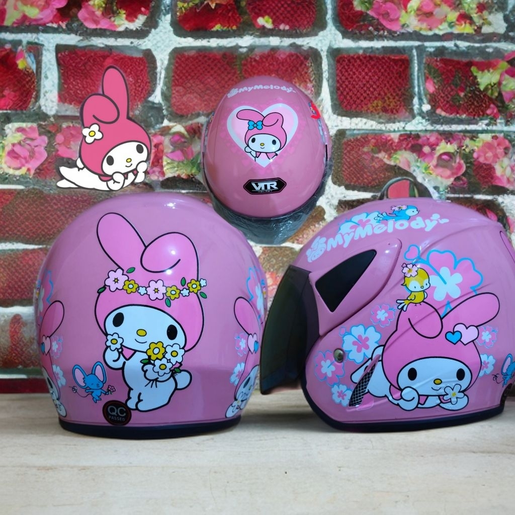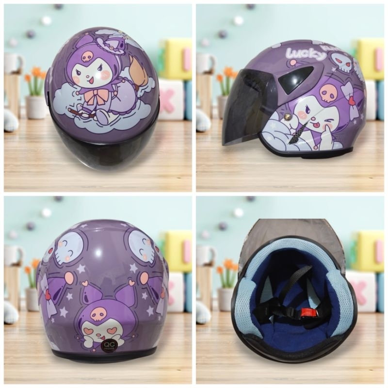 Helm Anak Cewek Perempuan Karakter Kuromi Labubu Melody 3-7 Tahun Bisa