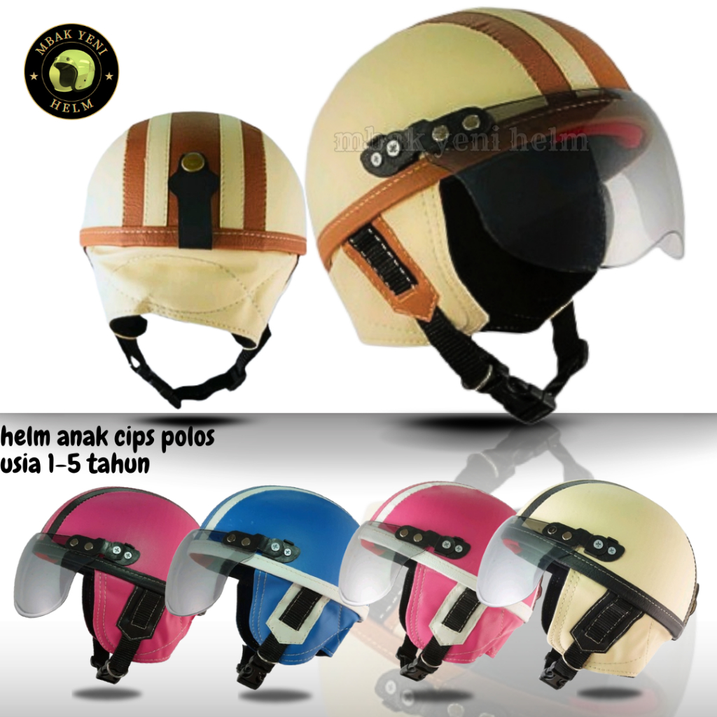 HELM ANAK RETRO CHIP GARIS 1 2 3 4 TAHUN KULIT JUNIOR KA RIBEN