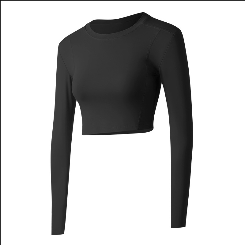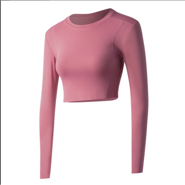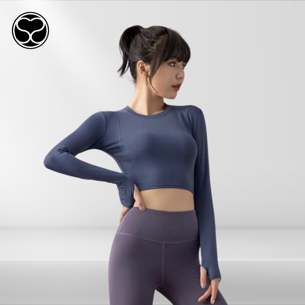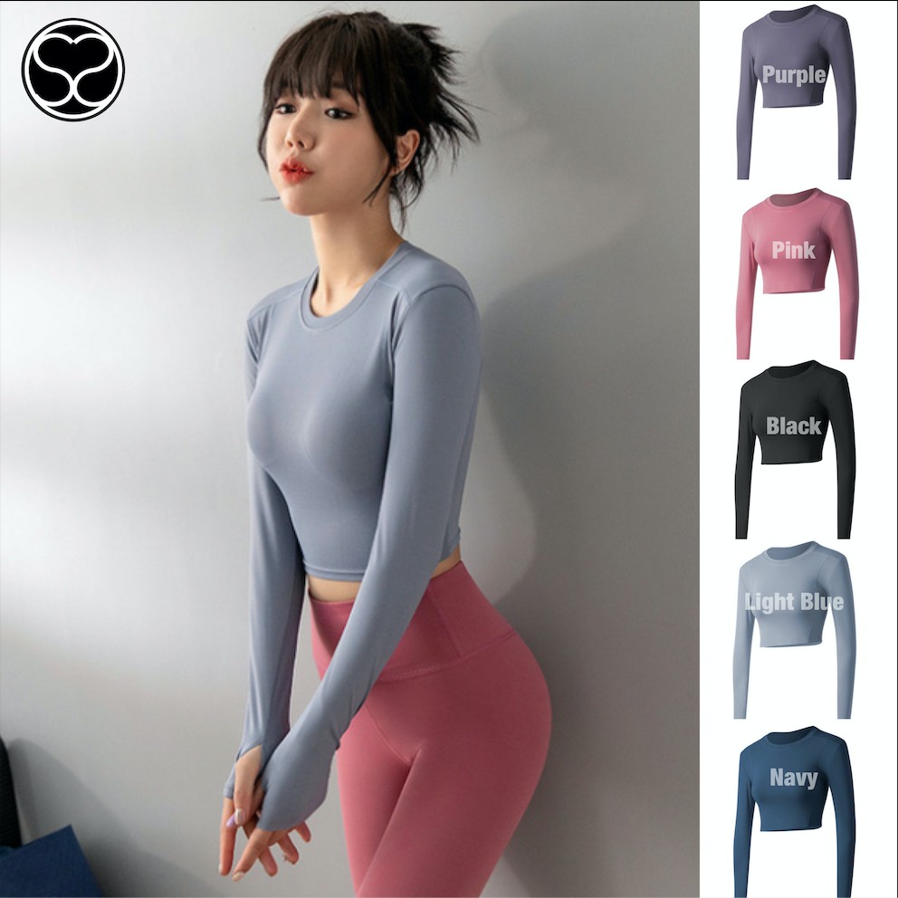 SecondShape - Crop Top T-Shirt Baju Olahraga Wanita Atasan Tangan Panjang Yoga Senam Tennis Padel Fitness Gym Padel