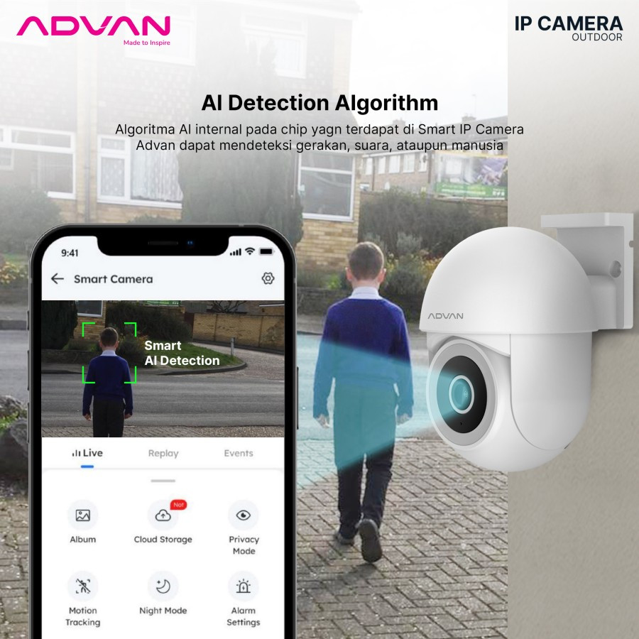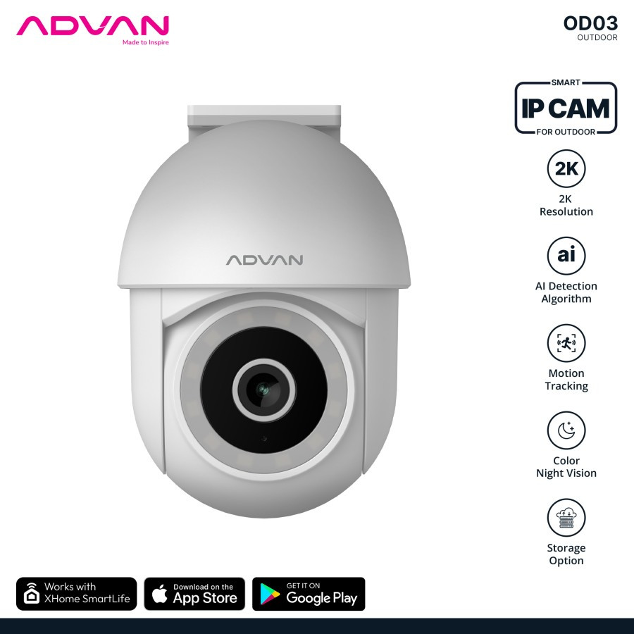 Advan Smart Ip Camera Outdoor Od3 Cctv 3Mp 2K Cctv Wifi Ptz Waterproof Ip65
